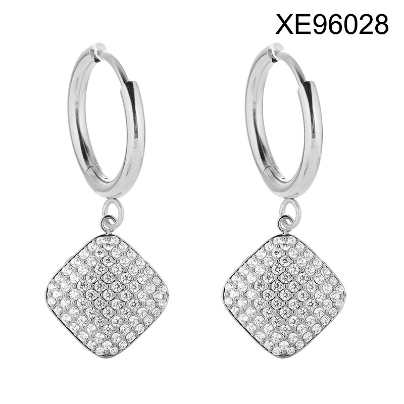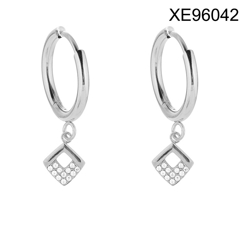 Level B Stainless Steel New Trendy Women Jewelry Rhombus Steel color Hoop Earrings