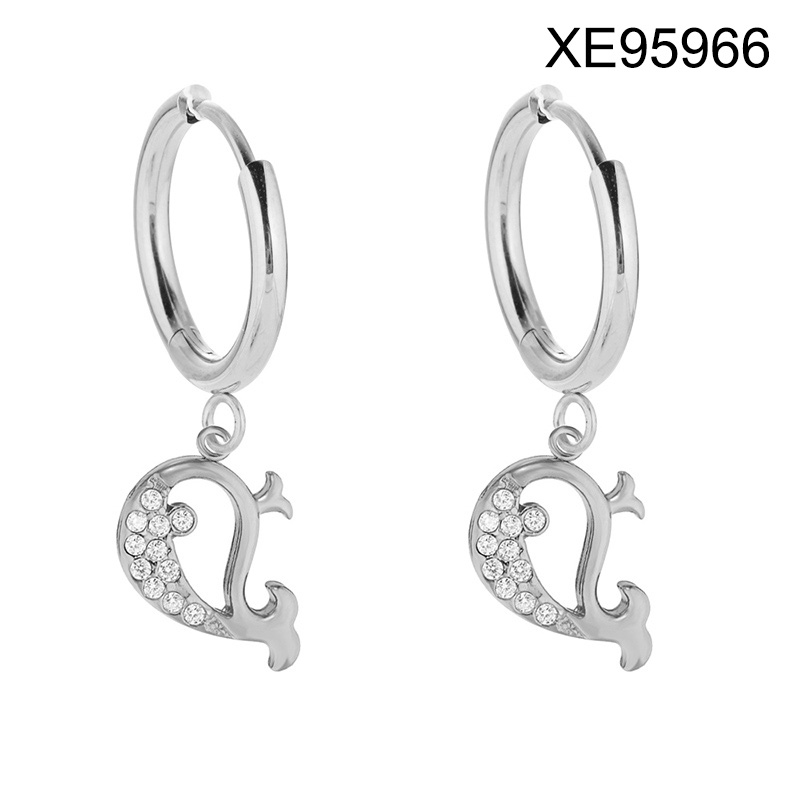 Level B Stainless Steel New Trendy Women Jewelry Summer beach Animal Whale Steel color Hoop Earrings