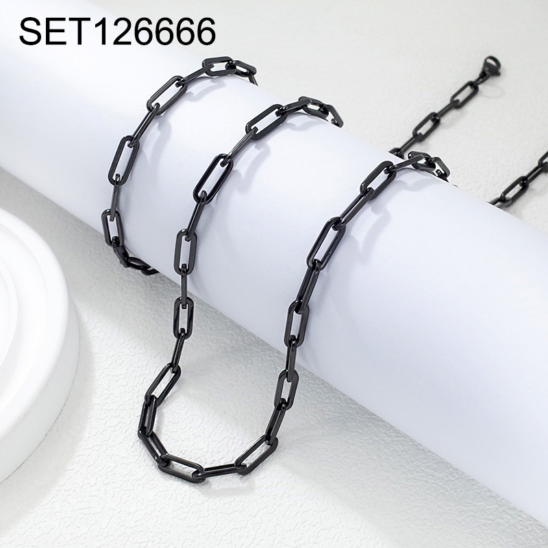 Level B Stainless Steel New Trendy Man Jewelry Plating Black Chain SET