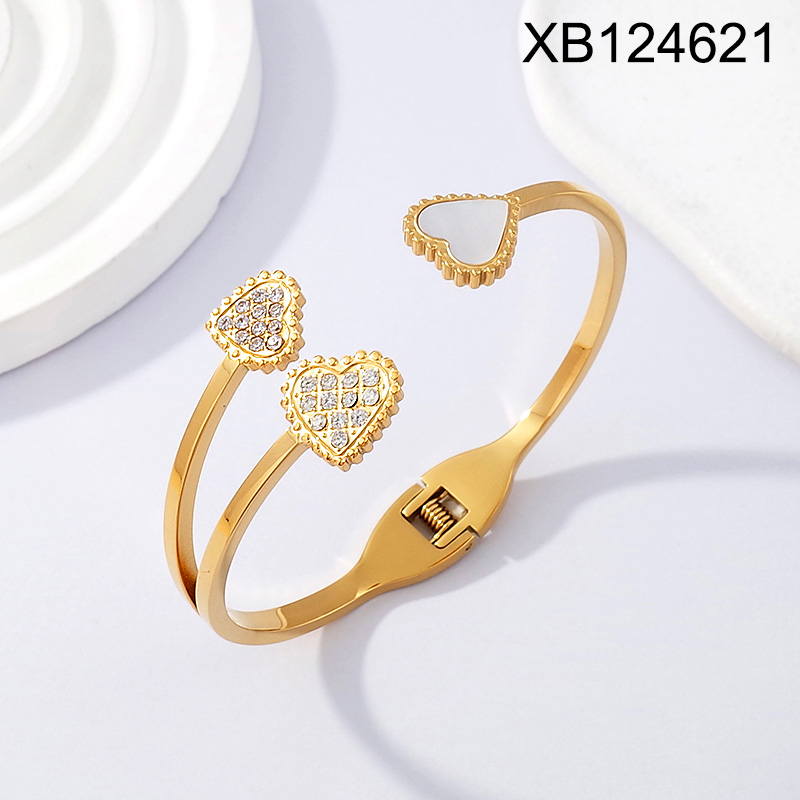 Home > Level A Stainless Steel New Trendy Women Jewelry Heart Golden Mother's Day Bangle