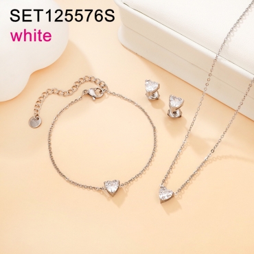 Home > Level A Stainless Steel New Trendy Women Jewelry Heart White Zircon Steel color 3pcs SET