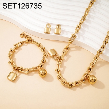 Level A Stainless Steel New Trendy Women Jewelry Lock Round Beads Golden 3pcs SET