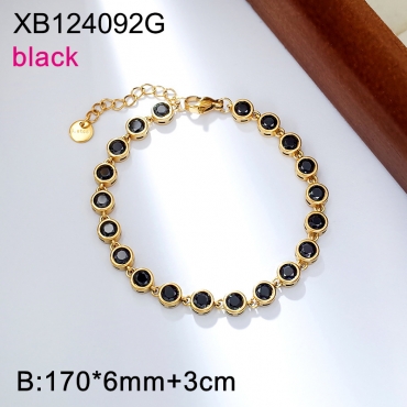 Home > Level A Stainless Steel New Trendy Women Jewelry Round Black Glass Golden Bracelet