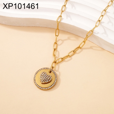 Home > Level A Stainless Steel New Trendy Women Jewelry Round Heart Golden Pendant
