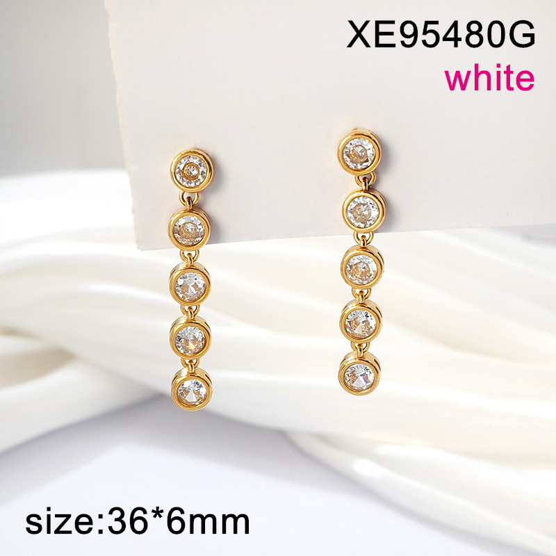 Home > Level A Stainless Steel New Trendy Women Jewelry Round White Zircon Golden Earrings