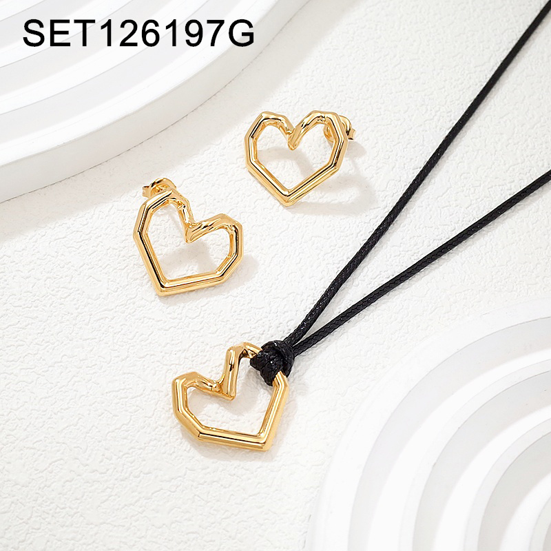 Home > Level A Stainless Steel Women Jewelry New Trendy Heart Golden Valentine's Day SET