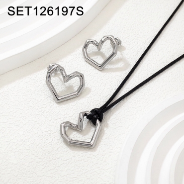 Home > Level A Stainless Steel Women Jewelry New Trendy Heart Steel color Valentine's Day SET