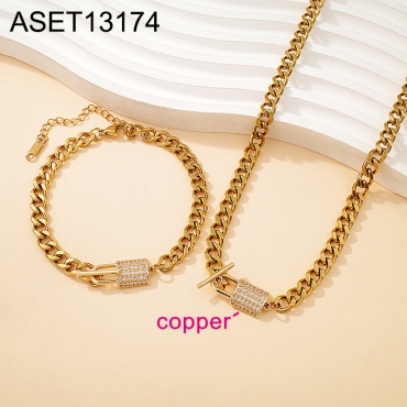 Home > Level B Fashion Jewelry New Trendy Women Jewelry Lock Golden Chain SET;Material:copper (cobre)
