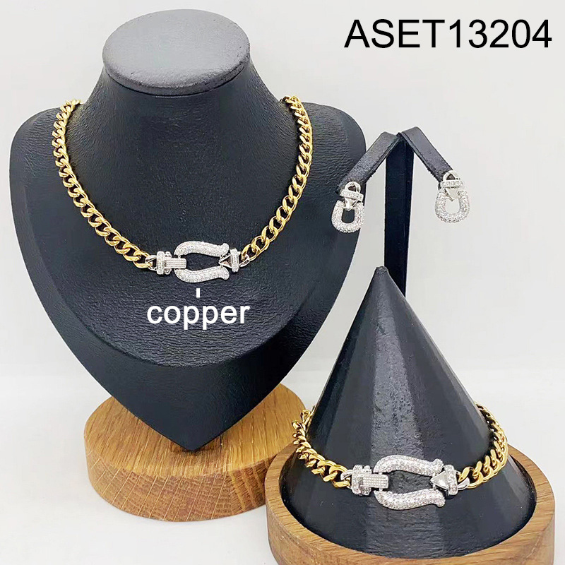 Level B Fashion Jewelry New Trendy Women Jewelry Magnet buckle Two Tone 3pcs SET;Material:copper (cobre)