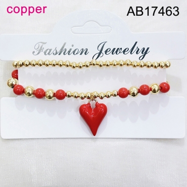 Level B Fashion Jewelry New Trendy Women Jewelry Niche Design Layered Jewelry Round Beads Heart Golden Mother's Day Elastic Bracelet;Material:copper (cobre)