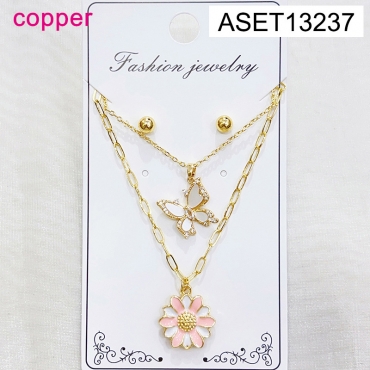 Home > Level B Fashion Jewelry New Trendy Women Jewelry Two Layers Chain Flower Animal Butterfly Golden SET;Material:copper (cobre)