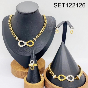 Level B Stainless Steel Jewelry New Trendy Number Eight Golden 4pcs SET