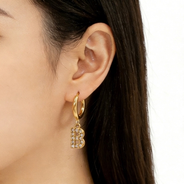 Level B Stainless Steel Jewelry New Trendy Sticky Stone Letter B Golden Hoop Earring