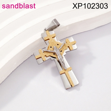 Level B Stainless Steel New Trendy Man Jewelry Cross Jesus Two Tone Sandblast Pendant