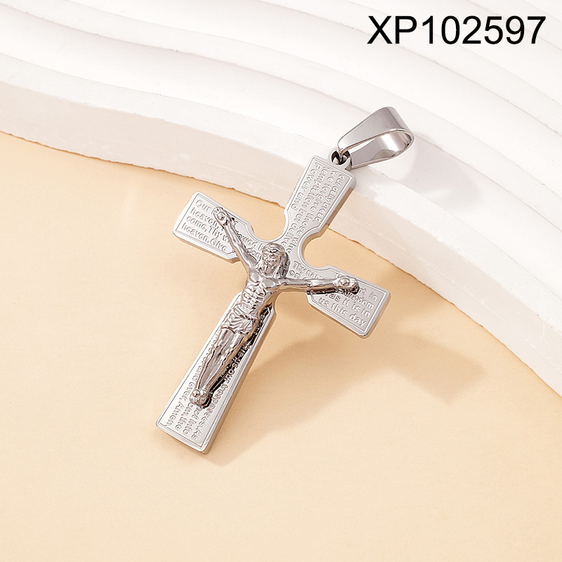 Level B Stainless Steel New Trendy Man Jewelry Cross Steel color Pendant