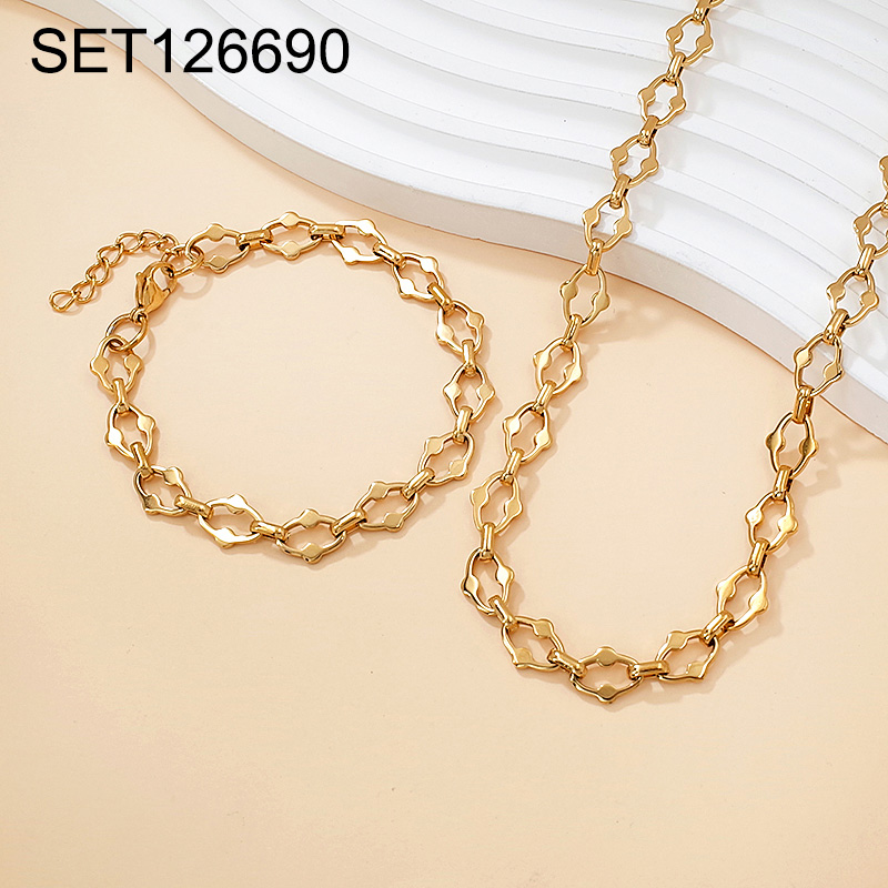 Level B Stainless Steel New Trendy Man Jewelry Golden Chain SET