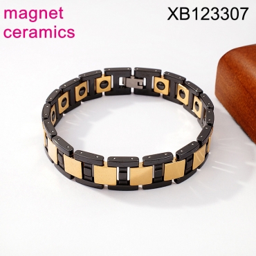 Level B Stainless Steel New Trendy Man Jewelry Golden Magnet Stone Black Ceramics Bracelet