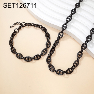 Home > Level B Stainless Steel New Trendy Man Jewelry Oval Pig nose Plating Black Chain SET