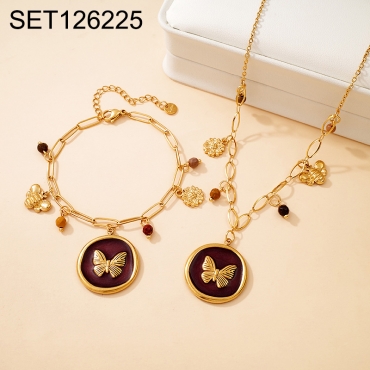 Level B Stainless Steel New Trendy Women Jewelry Animal Butterfly Bee Flower Golden Chain SET