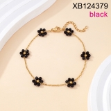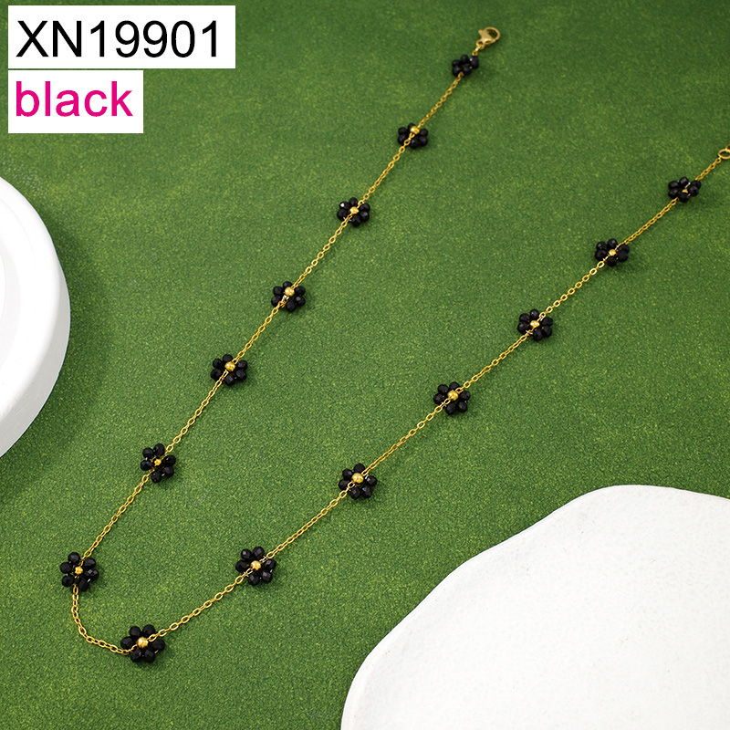 Level B Stainless Steel New Trendy Women Jewelry Black Glass beads Flower Golden Necklace