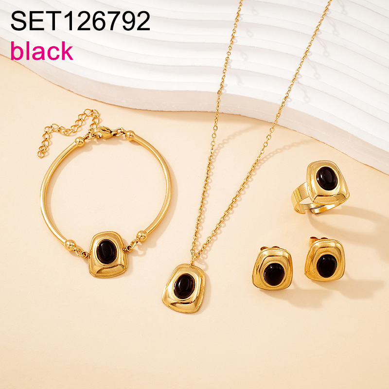 Level B Stainless Steel New Trendy Women Jewelry Black Opal Geometry Golden 4pcs SET