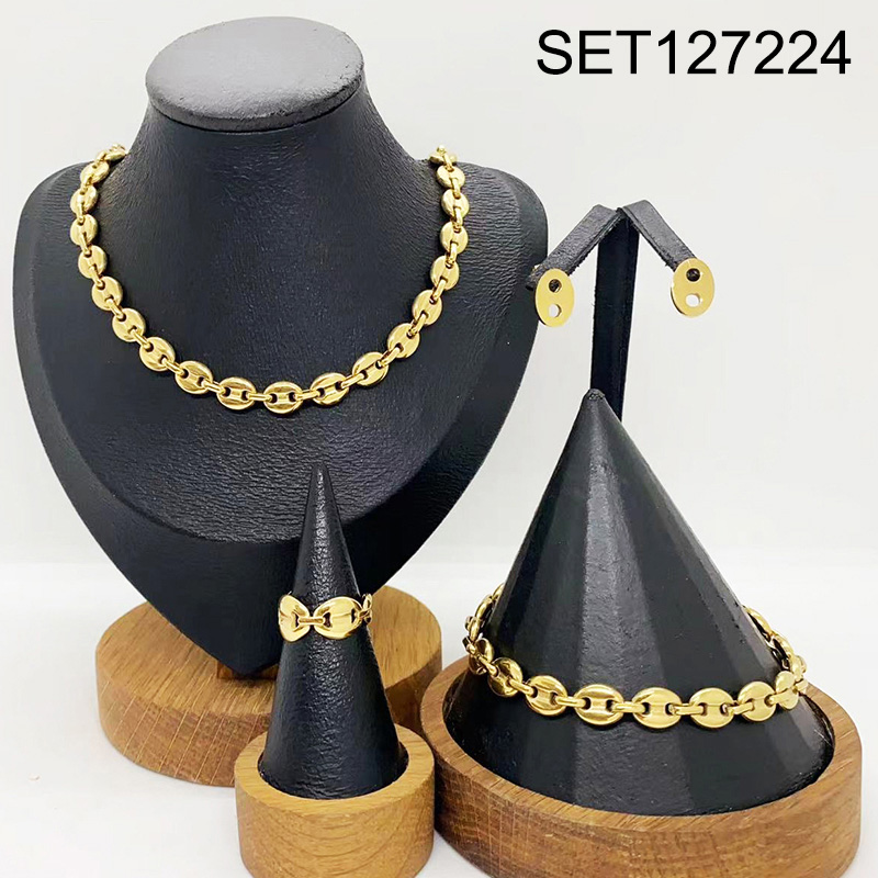 Level B Stainless Steel New Trendy Women Jewelry Coffee beans Pig nose Oval Golden 4pcs SET