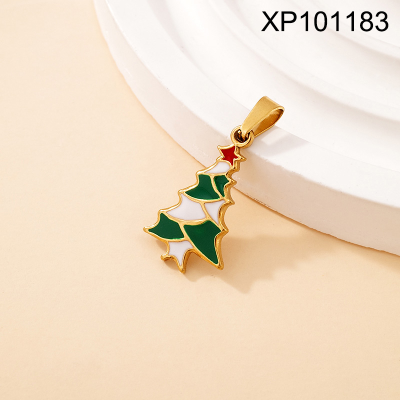 Level B Stainless Steel New Trendy Women Jewelry Drip Oil/Enamel Christmas Golden Pendant