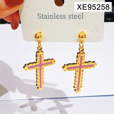 Home > Level B Stainless Steel New Trendy Women Jewelry Drip Oil/Enamel Cross Golden Earrings