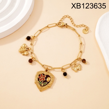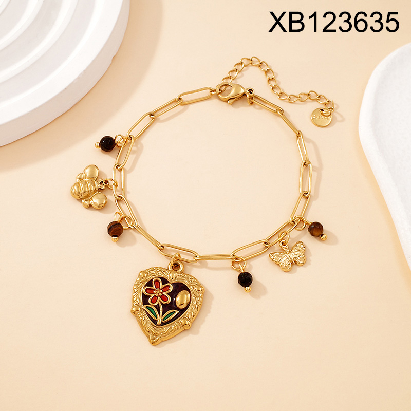 Level B Stainless Steel New Trendy Women Jewelry Drip Oil/Enamel Heart Animal Butterfly Bee Golden Bracelet