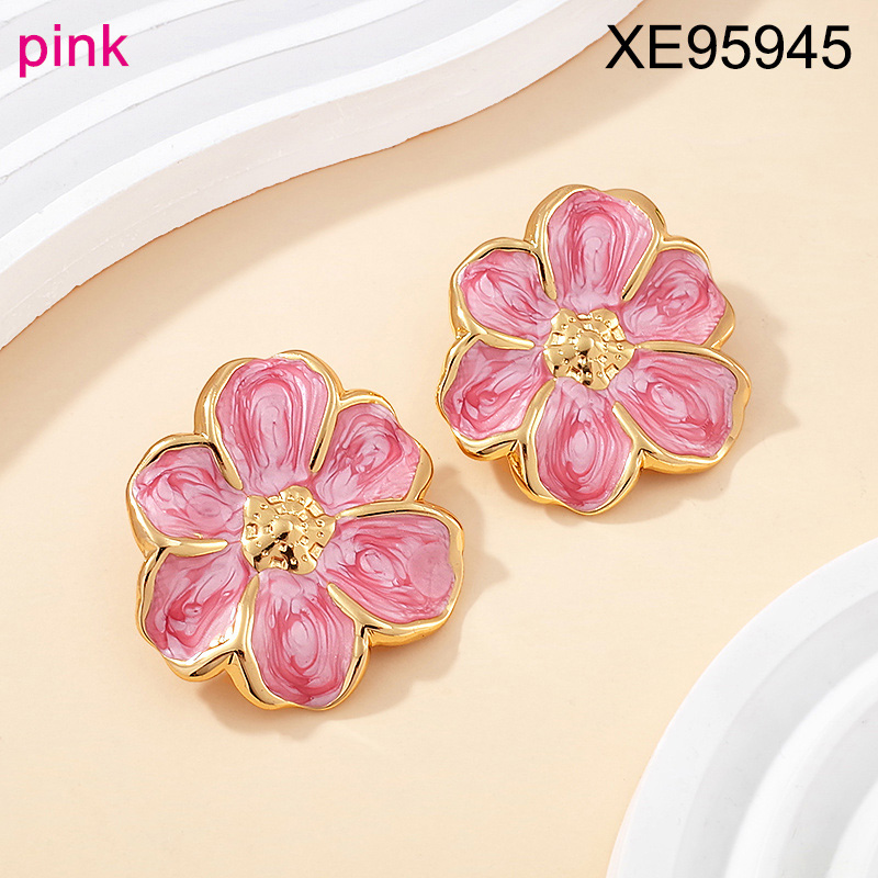 Home > Level B Stainless Steel New Trendy Women Jewelry Drip Oil/Enamel Pink Flower Golden Earrings
