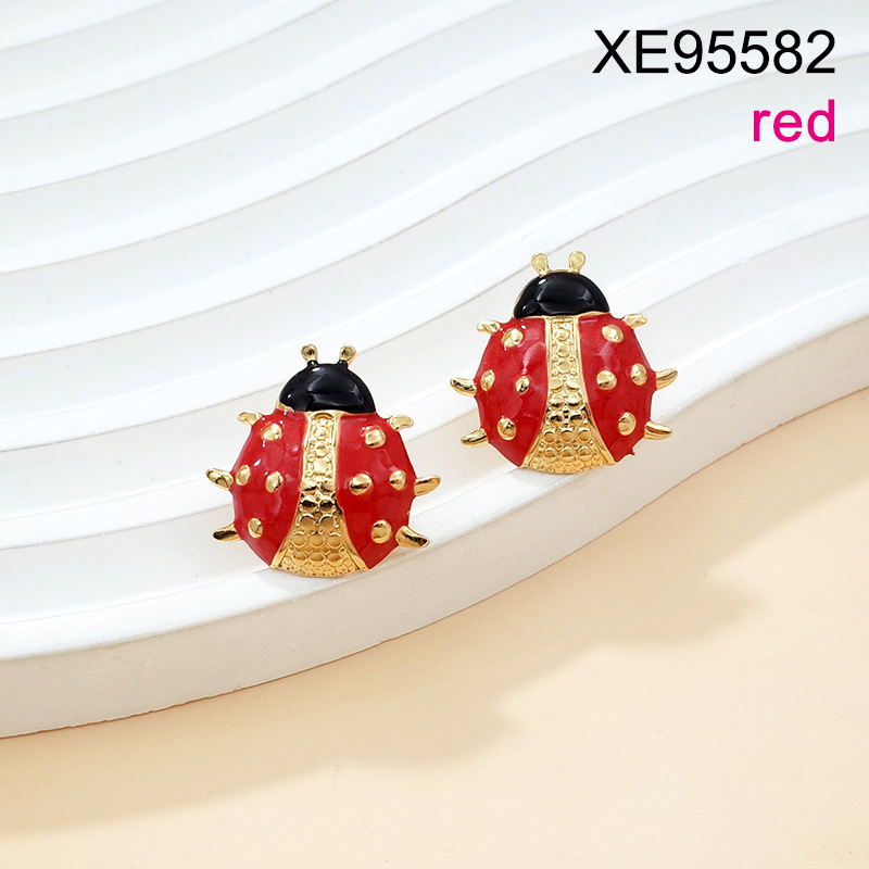 Level B Stainless Steel New Trendy Women Jewelry Drip Oil/Enamel Red Animal Beetle Golden Earrings