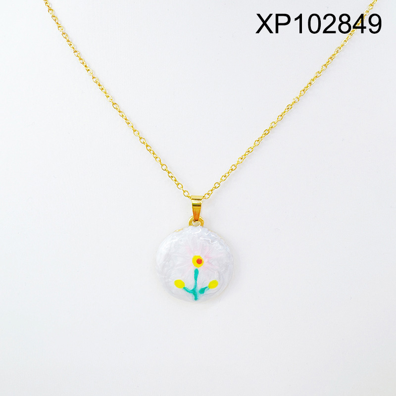 Home > Level B Stainless Steel New Trendy Women Jewelry Drip Oil/Enamel Round Flower Golden Pendant
