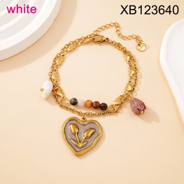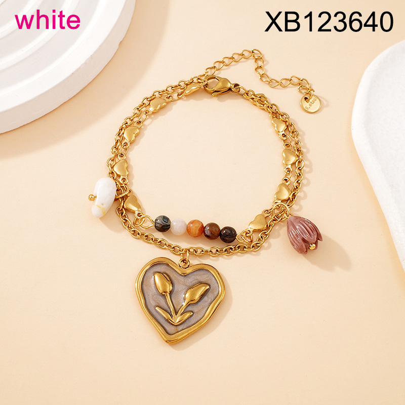 Level B Stainless Steel New Trendy Women Jewelry Drip Oil/Enamel White Heart Golden Bracelet