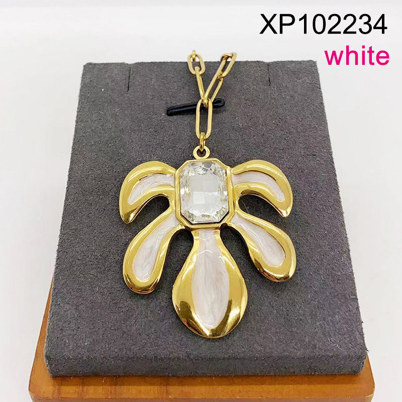 Level B Stainless Steel New Trendy Women Jewelry Drip Oil/Enamel White Leaf Golden Pendant