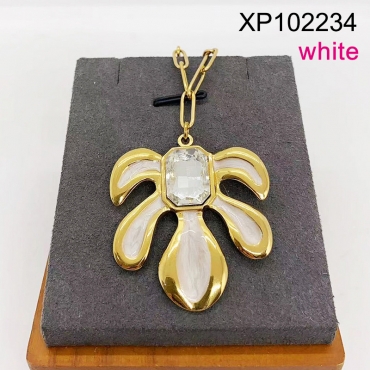 Home > Level B Stainless Steel New Trendy Women Jewelry Drip Oil/Enamel White Leaf Golden Pendant