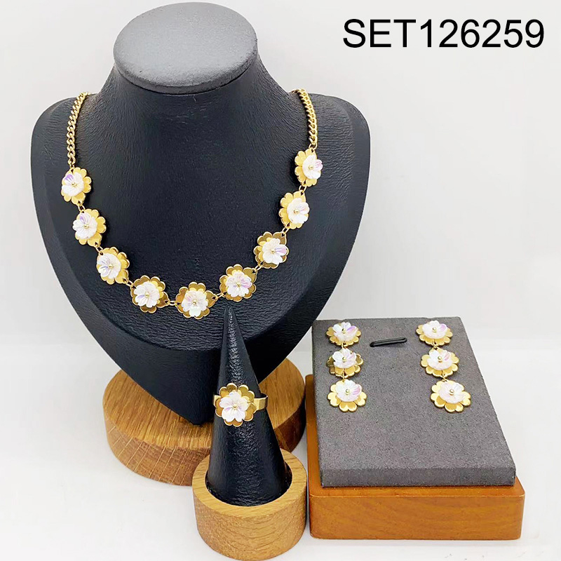 Level B Stainless Steel New Trendy Women Jewelry Flower Golden 3pcs SET