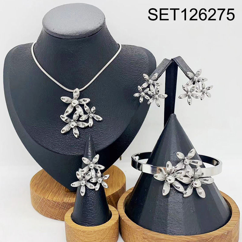 Level B Stainless Steel New Trendy Women Jewelry Flower Steel color 4pcs SET