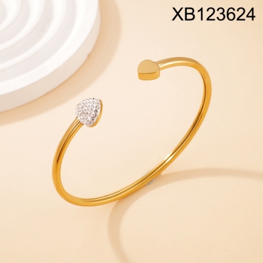 Home > Level B Stainless Steel New Trendy Women Jewelry Heart Golden Open Bangle;Bangle size can be adjusted freely