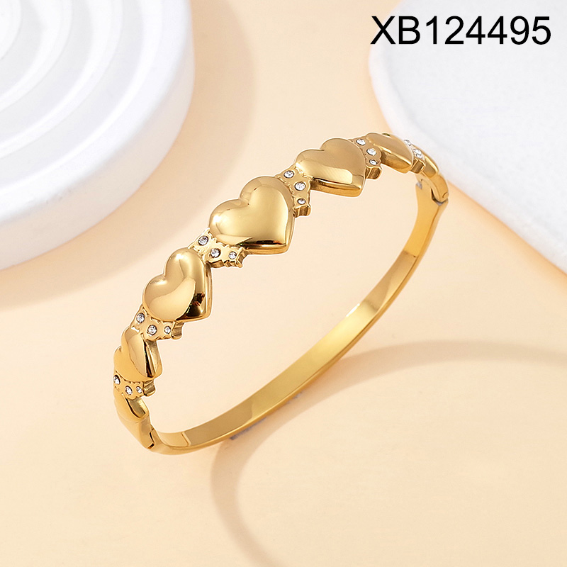 Home > Level B Stainless Steel New Trendy Women Jewelry Heart Golden Valentine's Day Bangle