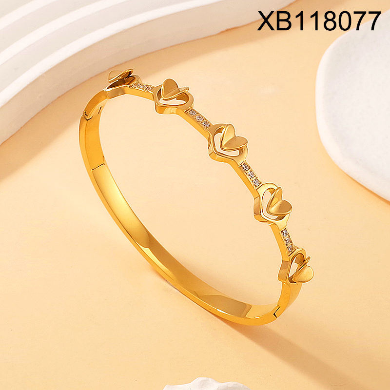 Home > Level B Stainless Steel New Trendy Women Jewelry Heart Golden Valentine's Day CNC Bangle
