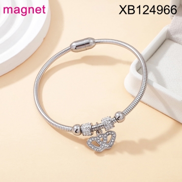 Level B Stainless Steel New Trendy Women Jewelry Heart Steel color Mother's Day Magnet buckle Bangle