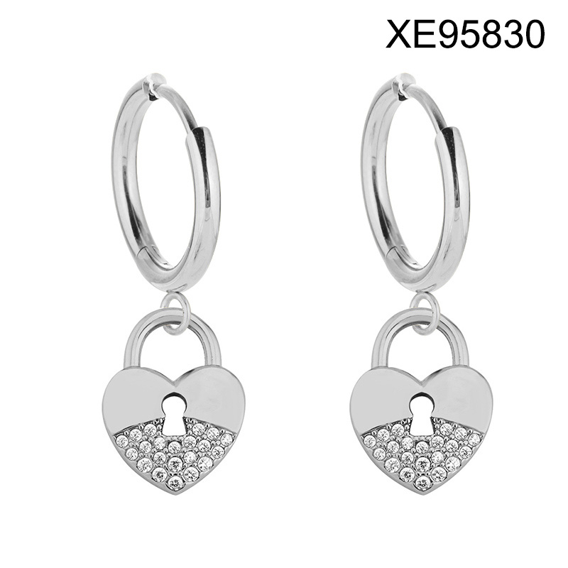Home > Level B Stainless Steel New Trendy Women Jewelry Lock Heart Steel color Valentine's Day Hoop Earrings