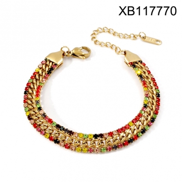 Level B Stainless Steel New Trendy Women Jewelry Mixed color Rhinestone Golden Bracelet