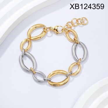 Home > Level B Stainless Steel New Trendy Women Jewelry Oval Two Tone Bracelet