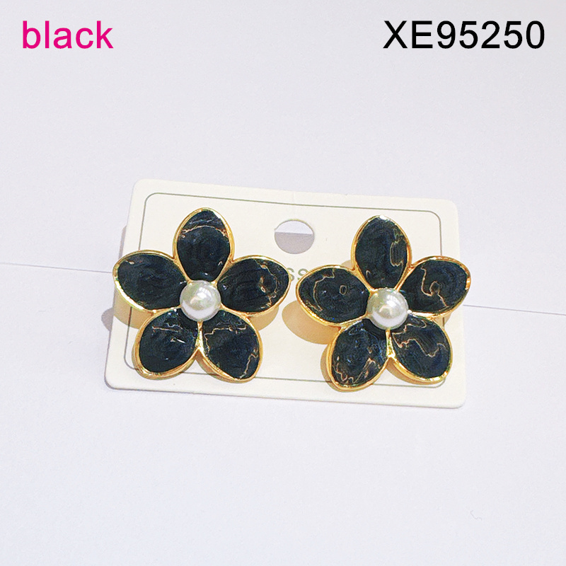 Level B Stainless Steel New Trendy Women Jewelry Pearl Style/Plastic Beads Drip Oil/Enamel Black Flower Golden Earrings