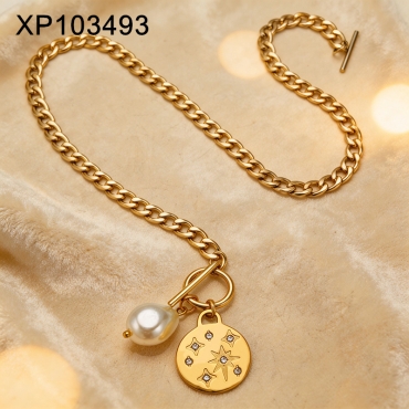 Level B Stainless Steel New Trendy Women Jewelry Pearl Style/Plastic Beads Eight-Pointed Star Golden Pendant