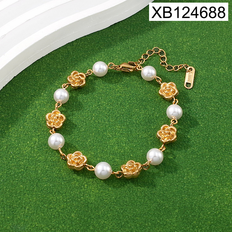 Level B Stainless Steel New Trendy Women Jewelry Pearl Style/Plastic Beads Flower Golden Bracelet