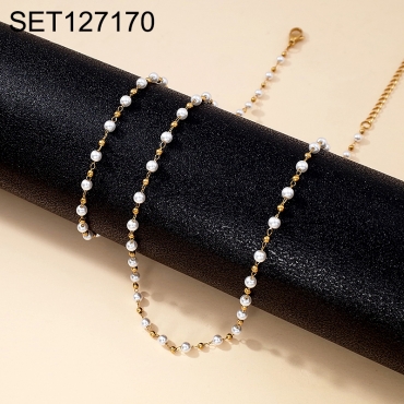 Level B Stainless Steel New Trendy Women Jewelry Pearl Style/Plastic Beads Golden Chain SET