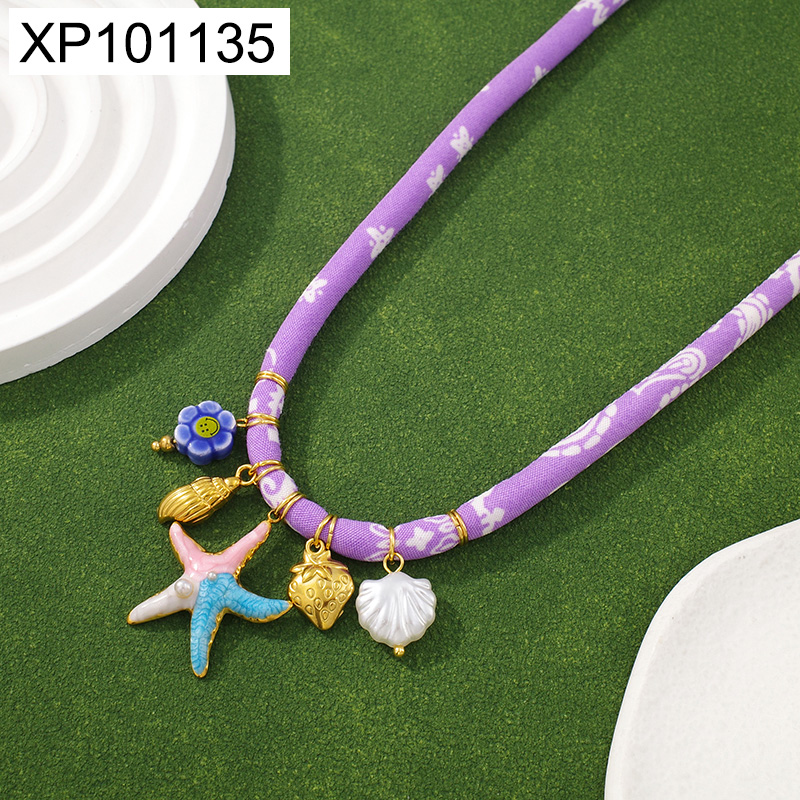 Level B Stainless Steel New Trendy Women Jewelry Pearl Style/Plastic Beads Summer beach Animal Starfish Conch Strawberry Flower Golden Pendant