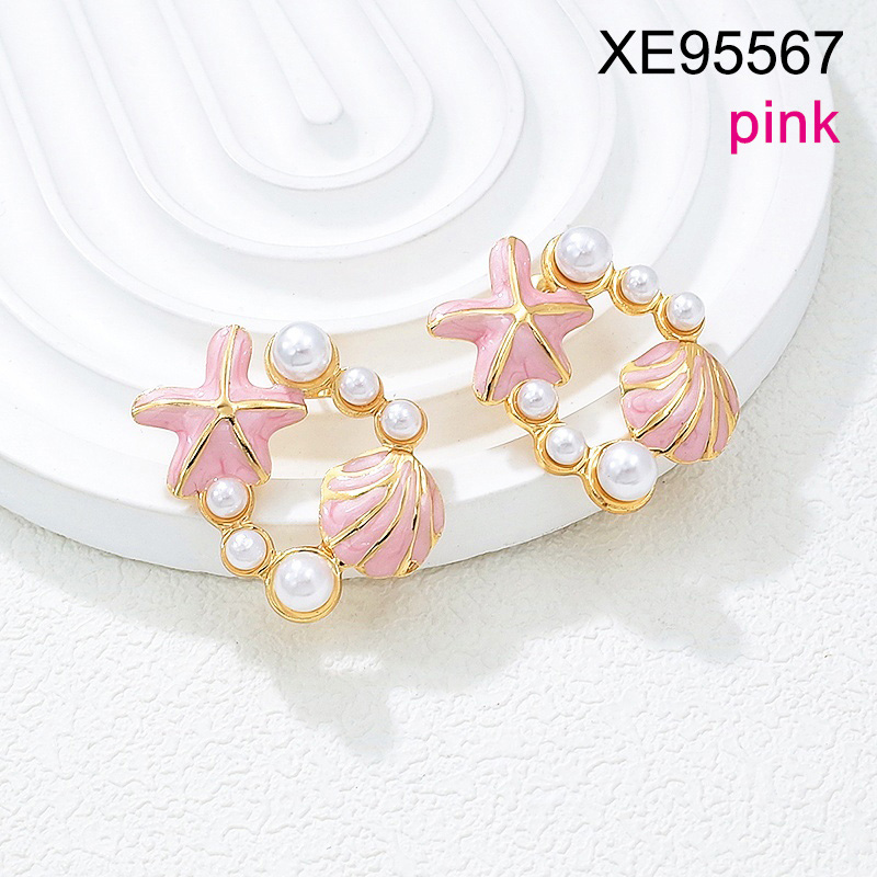 Home > Level B Stainless Steel New Trendy Women Jewelry Pearl Style/Plastic Beads Summer beach Drip Oil/Enamel Pink Animal Shell Starfish Golden Earrings